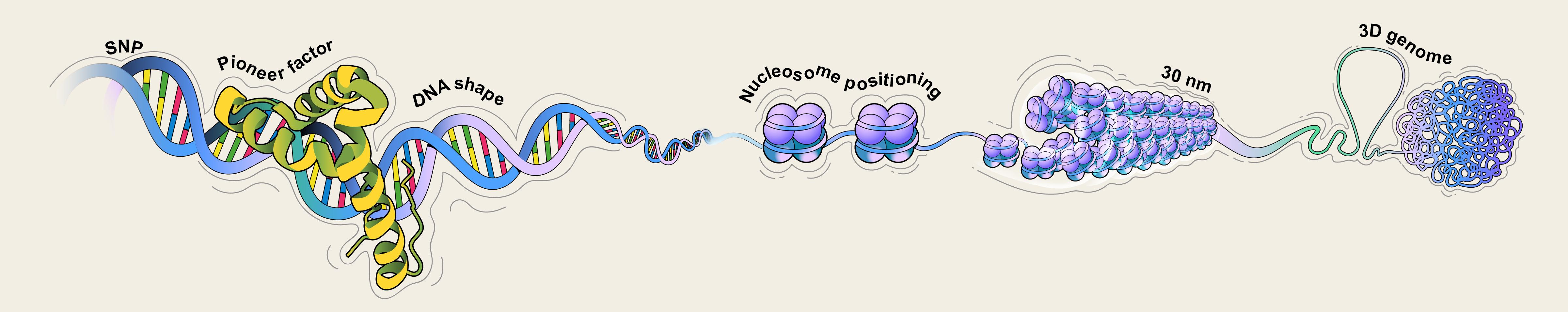 Studying multi-level chromatin structures (nucleosome, 30nm fiber, loops, TADs) and their regulatory roles in gene expression and cell differentiation. Focus on nucleosome positioning dynamics and cancer-related structural modeling.